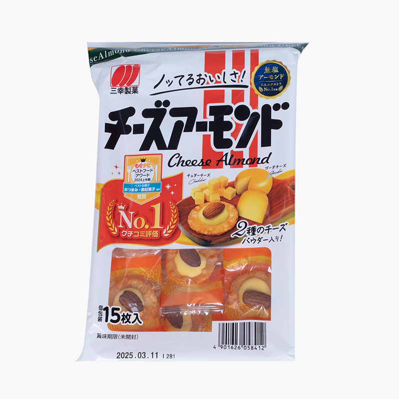 Bánh gạo phô mai hạnh nhân Sanko, kết hợp 2 loại phô mai đậm vị 65.2g (15 cái)
