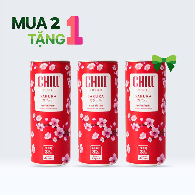 Nước cocktail Chill Sakura vị dưa hấu sake 250ml (Combo Mua 2 TẶNG 1)