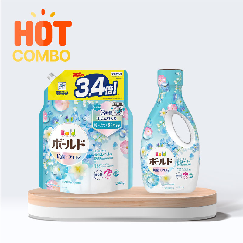 Nước giặt chống khuẩn khử mùi Bold P&G 1.36kg Hương hoa tươi mát, không hôi khi phơi trong nhà
