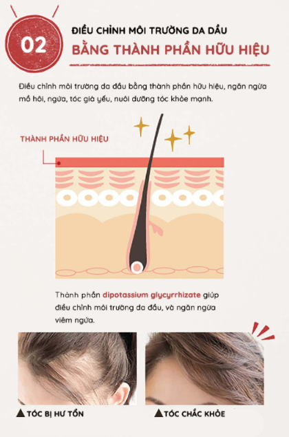✔ Điều chỉnh môi trường da đầu bằng thành phần dipotassium glycyrrhizate hữu hiệu, ngăn ngừa viêm ngứa, tóc yếu, nuôi dưỡng tóc khỏe mạnh từ gốc tới ngọn.
