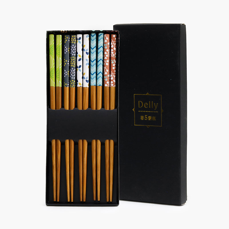 Đũa tre đầu nhọn 22.5cm (5 đôi) (Họa tiết Bắc Âu)