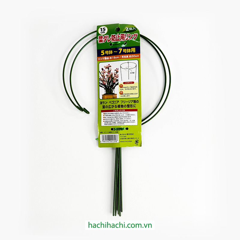 Sản phẩm được kết hợp 1 vòng đỡ cùng 3 trụ cắm. Vòng có móc cài, dễ dàng thao tác. Giúp cây đứng vững, cành lá không bị nghiêng ngã.