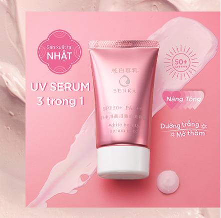 CC Serum Senka với 3 công dụng trong 1: Dưỡng trắng giảm thâm, nâng tông sáng da che phủ khuyết điểm, chống nắng hiệu quả