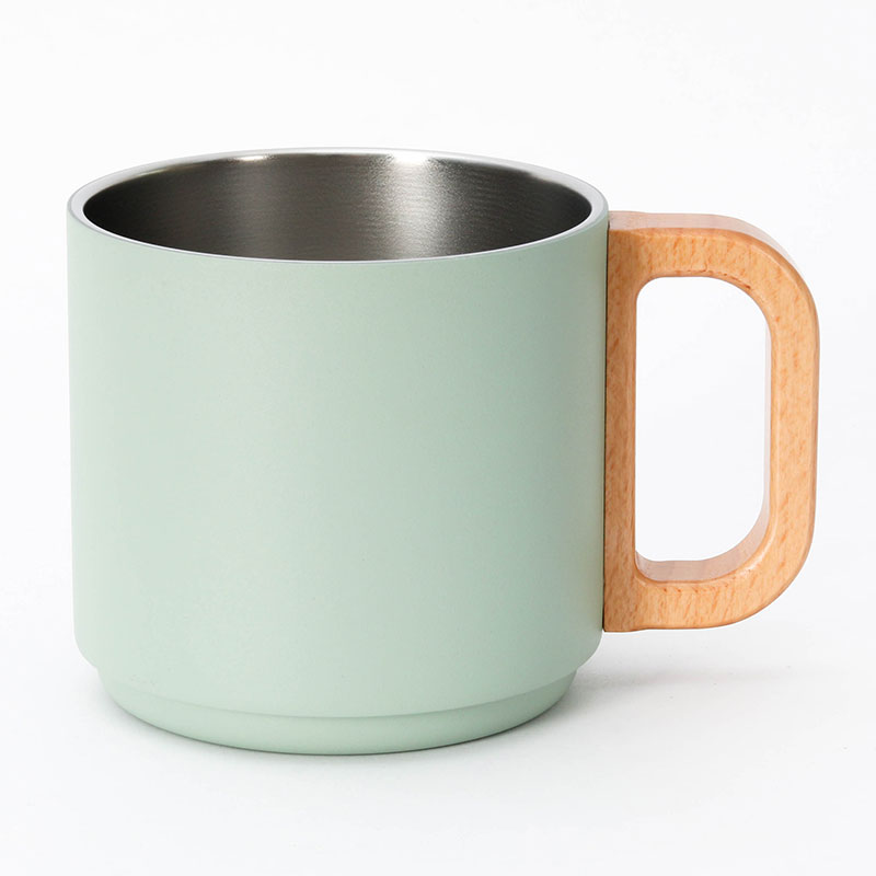 Ca, cốc, ly giữ nhiệt inox Pearl Metal 350ml quai gỗ (Xanh)