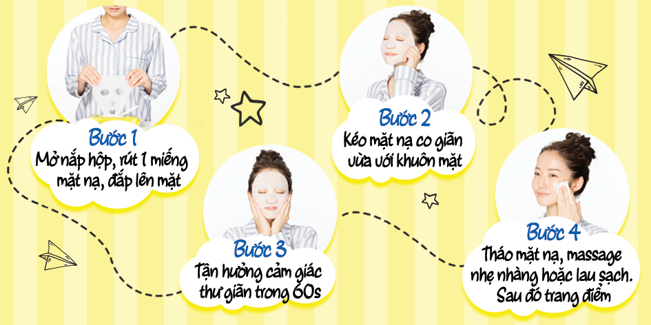 4 bước đơn giản sử dụng Mặt nạ dưỡng da 1 phút Saborino