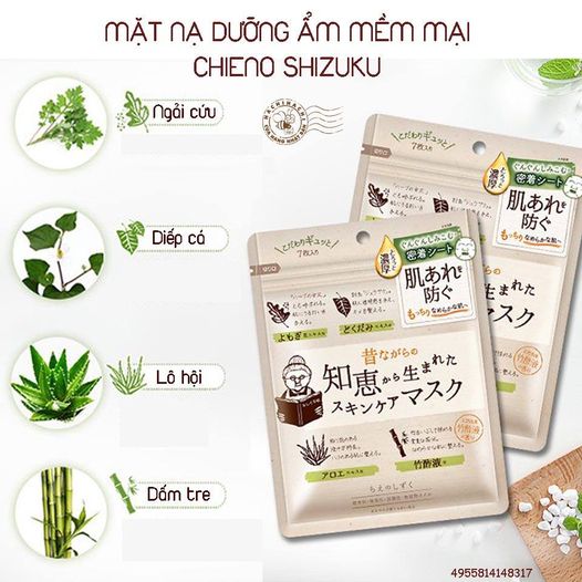 MẶT NẠ ĐÔNG Y DƯỠNG ẨM CHIENO SHIZUKU với công thức cổ truyền Nhật Bản từ giấm tre và lô hội kết hợp cùng công thức chăm sóc da thời cổ đại sẽ cung cấp độ ẩm cần thiết cho da, giúp mang đến cho bạn làn da ẩm mịn, tươi trẻ.