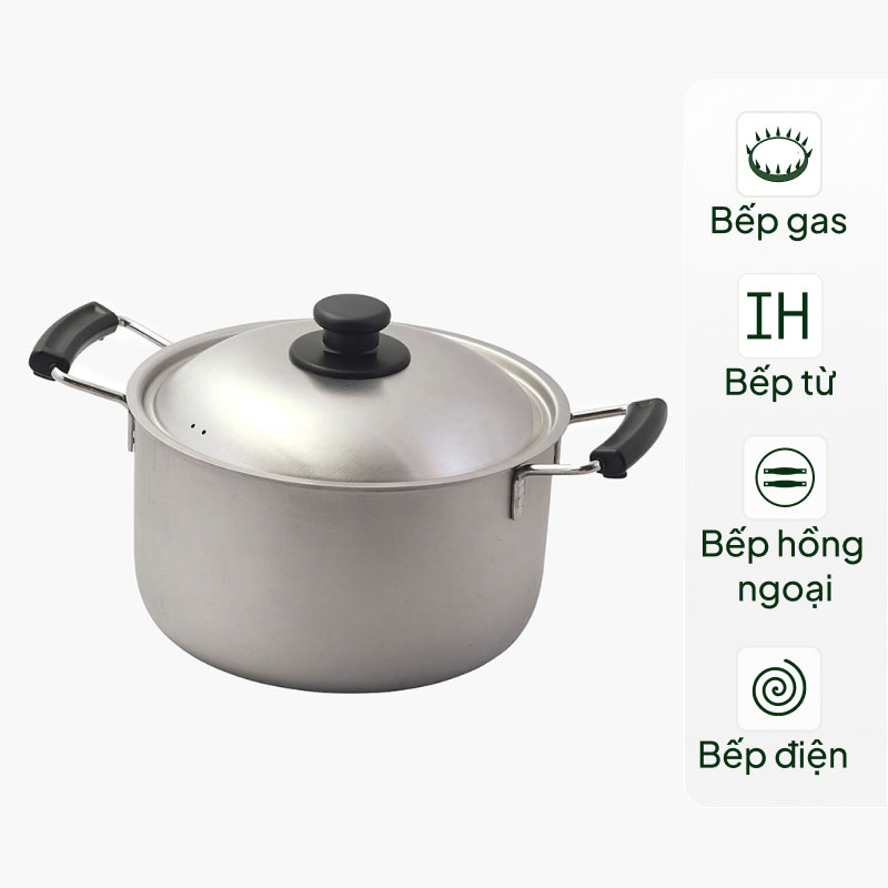 | Hướng dẫn sử dụng | Chất liệu inox bền chắc, khó gỉ sét, bề mặt trong được gia công dập nổi, nhám mịn, khó trầy xước. Với 2 quai cầm bọc nhựa, thuận tiện cầm di chuyển trong lúc nấu ăn. Dùng được với mọi loại bếp: Bếp gas, bếp điện từ, bếp điện, bếp hồng ngoại… HDSD: Dùng nấu, chế biến thức ăn. Nên nấu với lửa trung bình - nhỏ (không vượt quá 200 độ C). |