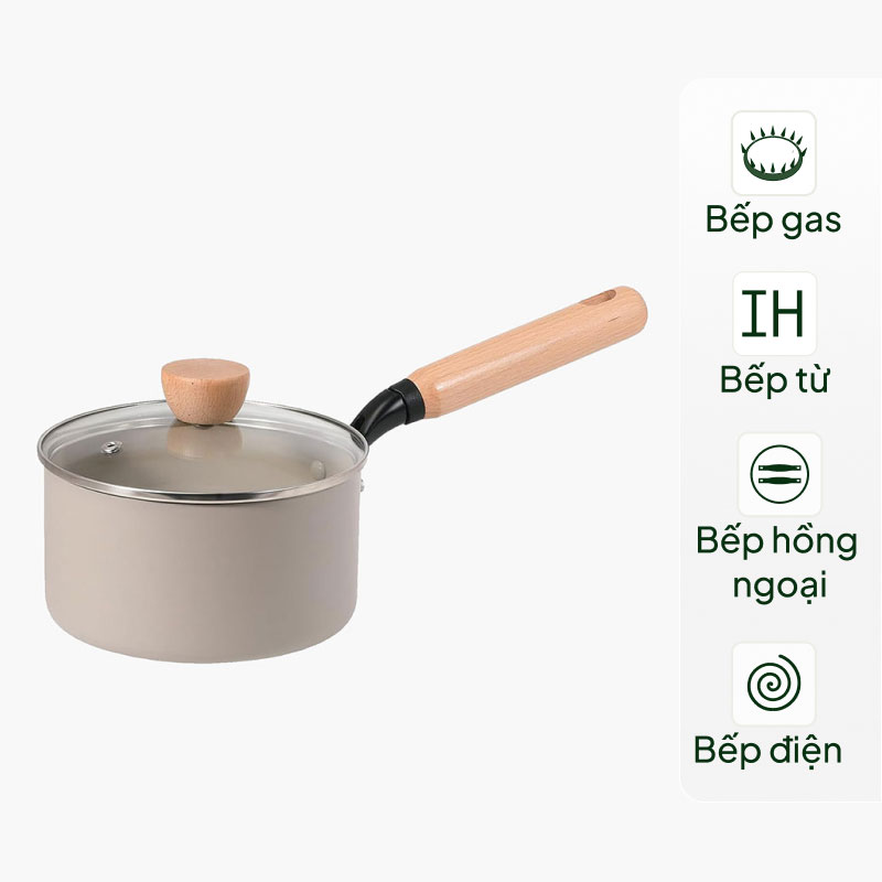 Được làm bằng hợp kim nhôm, bề mặt trong phủ lớp Flo chống dính hiệu quả, không chứa PFOA, PFOS, an toàn hơn khi sử dụng. Truyền nhiệt tốt, tiết kiệm nhiên liệu. Dùng được cho mọi loại bếp (bếp gas, bếp từ, hồng ngoại, điện…). Kèm nắp kính dễ dàng quan sát thức ăn bên trong. Tay cầm gỗ sang trọng, hạn chế truyền nhiệt nóng.