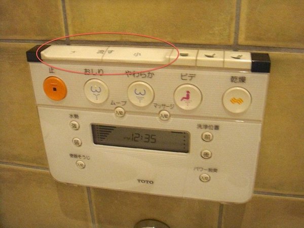 Trên cần gạt nước có viết 「大」và「小」. Nó biểu thị lượng nước sẽ xả ra. Nếu có xả cùng với giấy vệ sinh thì gạt cần đến mức「大」, nếu không thì chỉ cần gạt đến mức「小」là được.