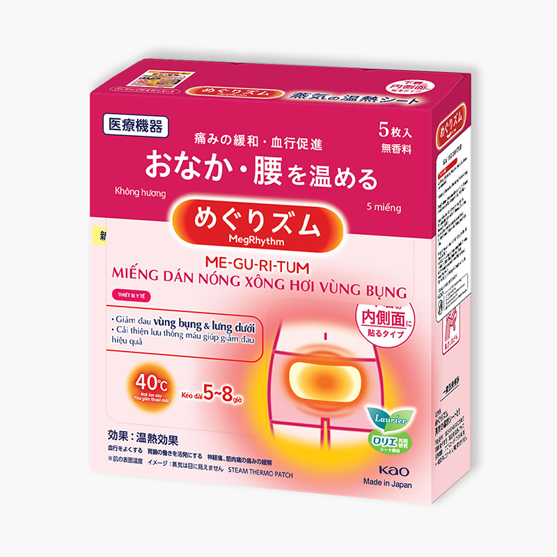 Miếng dán nóng vùng bụng dưới MegRhythm là thiết bị y tế, giúp làm nóng và giảm đau vùng bụng/ lưng dưới trong ngày “đèn đỏ” hoặc khi có vấn đề về tiêu hóa.