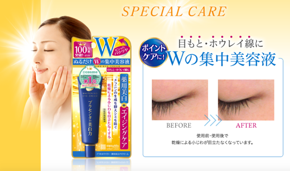 | Hướng dẫn sử dụng | Với thành phần chiết xuất Placenta quốc sản được tuyển chọn kỹ lưỡng, ngăn chặn sự hình thành hắc sắc tố Melanin, tập trung chăm sóc, dưỡng trắng, mờ thâm quầng, đồi mồi vùng da xung quanh mắt. Kết hợp cùng Collagen và chiết xuất hạt ý dĩ dưỡng ẩm, giúp da căng mịn đàn hồi, xóa đi các nếp nhăn nông, vết chân chim, ngăn ngừa chảy xệ, lão hóa da vùng mắt. HDSD: Dùng sáng & tối. Sau khi thoa lotion, kem dưỡng, lấy một lượng kem thích hợp ra đầu ngón tay rồi thoa đều lên vùng da quanh mắt. Massage vùng da xung quanh mắt, massage kỹ những vùng da khô, vết chân chim hoặc thâm quầng. |