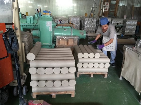 Nguyên liệu đất sét được cho vô máy trộn đều thành những trụ dài, sau đó cắt ra theo các kích cỡ quy định, dập qua các khuôn để tạo thành hình sản phẩm.