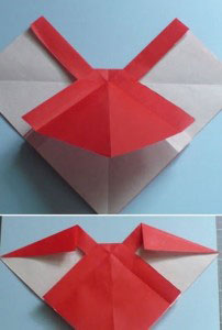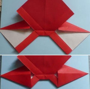 ![]() | Gấp cánh dưới lên phía trên và gấp 2 hình tam bên dưới lên |
