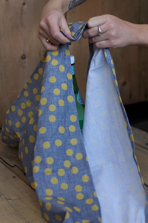 Kiểu gói ghém này có thể được dùng để chứa thực phẩm như bánh mì , hoa quả… hay các đồ vật không có phom dáng, chất liệu cứng. Đôi khi, nó cũng có thể biến thành chiếc túi làm điệu của chị em phụ nữ khi đi mua sắm hay lúc dạo chơi, cắm trại.