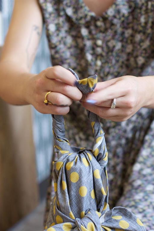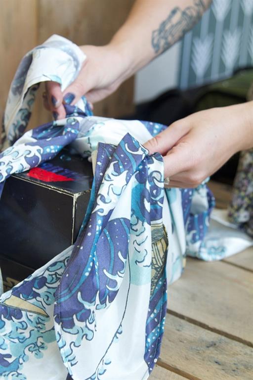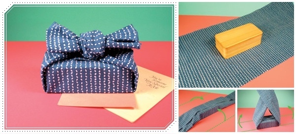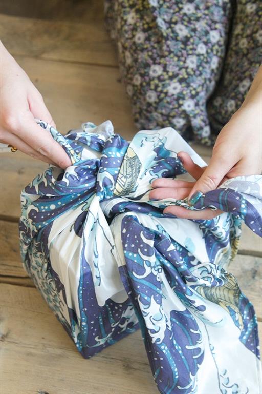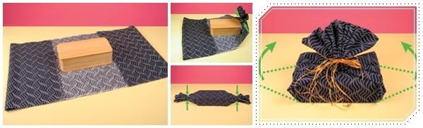 Thông thường, ta thường bọc hộp quà vuông bằng giấy rồi đính thêm một chiếc nơ. Với người Nhật, một vuông vải có thể thay thế vai trò của cả giấy gói và nơ.