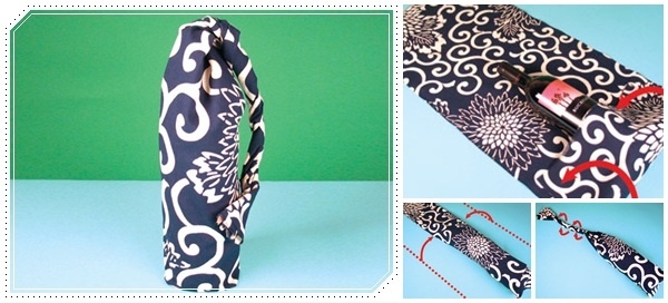 Thế là bạn đã hoàn thành “giấy gói quà” bằng vải cho chai rượu đậm đà của mình. Với kiểu gói này, bạn có thể cầm vào thân chai rượu hoặc cầm túm phía trên để mang đi bất cứ đâu.